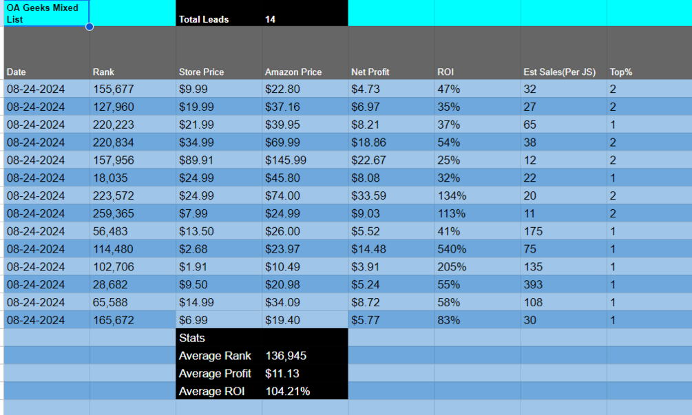 π₯π₯ One Day Solo Online Arbitrage Leads List 08/24/24 β Gear Up for Q4 Success! π₯π₯