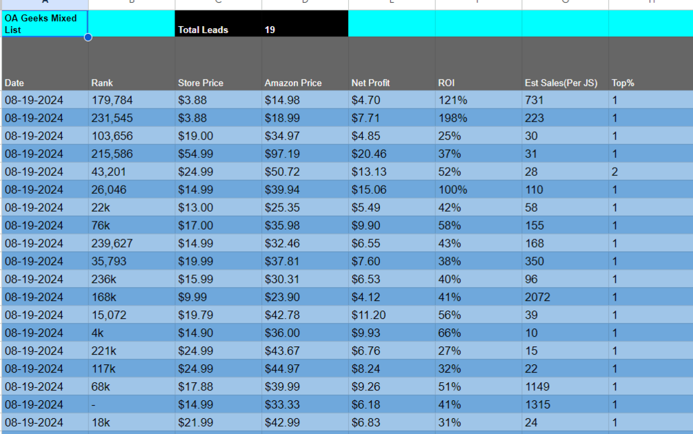 πŸ”₯πŸ”₯One Day Solo Online Arbitrage Leads List 08/19/24 – Gear Up for Q4 Success! πŸ”₯πŸ”₯