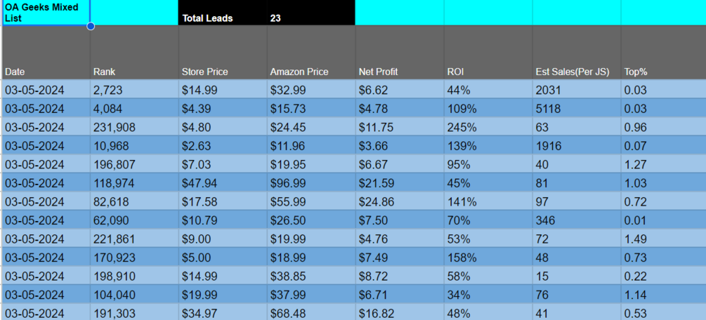 In the ever-evolving Amazon marketplace, seizing the right opportunities is key to elevating your profits. Our One Day OA Lead List is expertly crafted to give you a competitive edge. Tailored for immediate impact, this list is your go-to resource for transforming potential into profit, any day you choose to use it.
