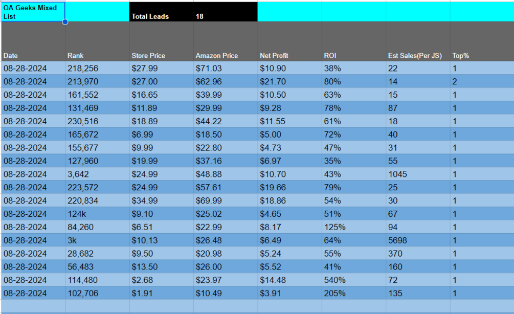 πŸ”₯πŸ”₯One Day Solo Online Arbitrage Leads List 08/28/24 – Gear Up for Q4 Success! πŸ”₯πŸ”₯